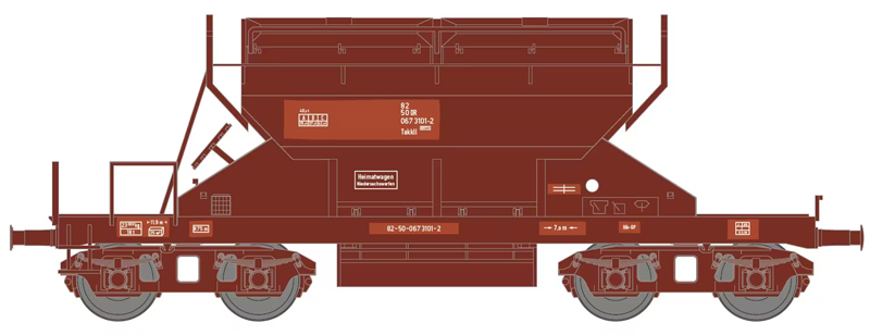 | nákladní samovýsypný vůz červenohnědý (RAL 8012) s barevnými záplatami s krycími klapkami |