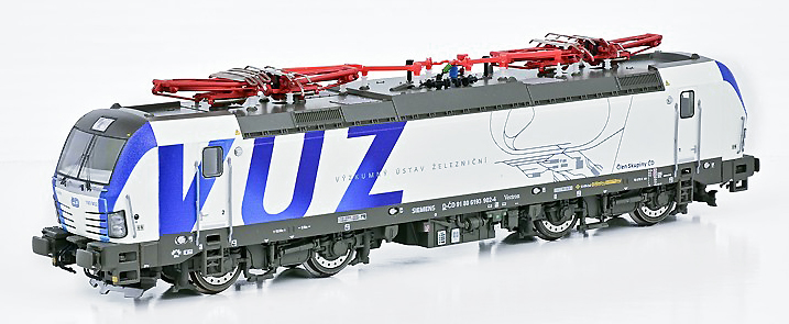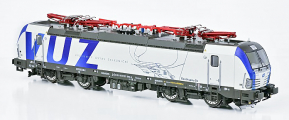 | elektrická lokomotiva v reklamním potisku „VÚŽ“ |