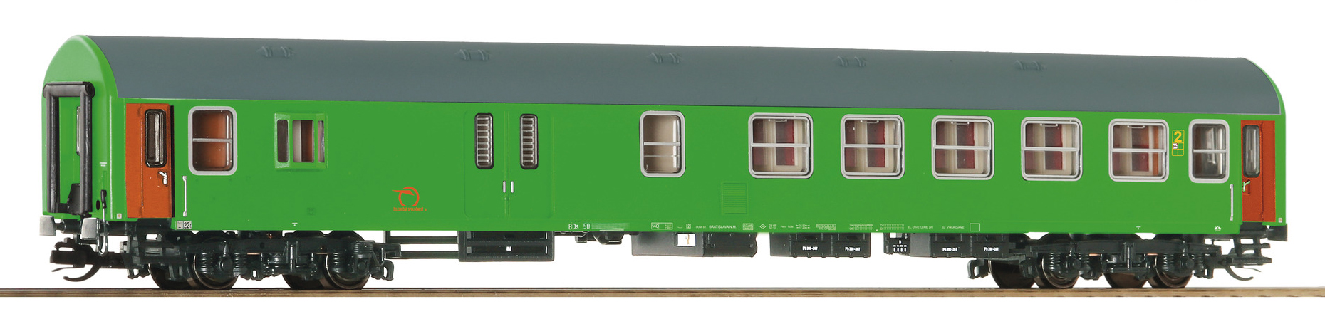 | rychlíkový vůz se zavazadlovým oddílem hráškově zelený s šedou střechou 2. tř. |