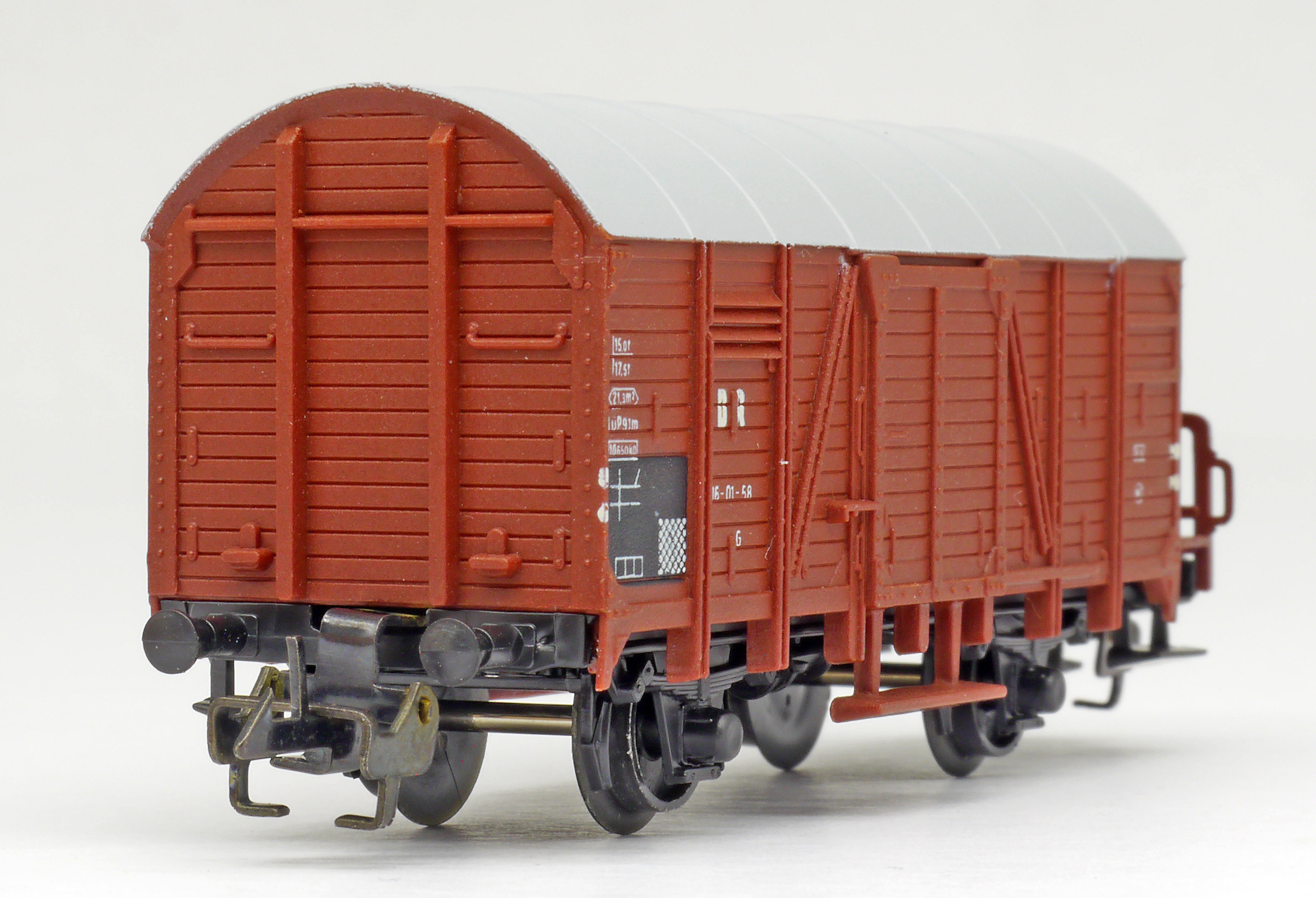 měřítko 1:120 - rozchod kolejí 12 mm nenormované uchycení spřáhla 81,5 mm - celková délka modelu přes nárazníky 2 - celkový počet náprav nebo rozložení náprav 19 g - hmotnost netto - pouze model