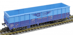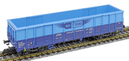 | vysokostěnný nákladní vůz modrý s logem „NH TRANS“ |