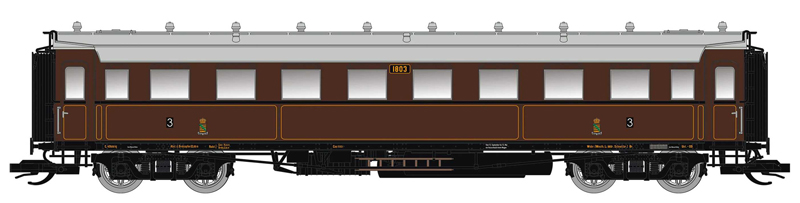 | oddílový osobní vůz hnědý s šedou střechou 3. tř. |