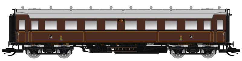 | osobní vůz hnědý s šedou střechou 3.tř. |