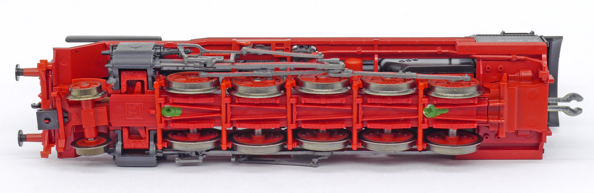 Kód   02292  [Lokomotivy] → [Parní] → [BR 50] → 02292: černá s kouřovými plechy a červeným pojezdem