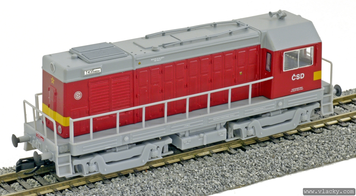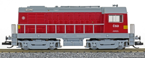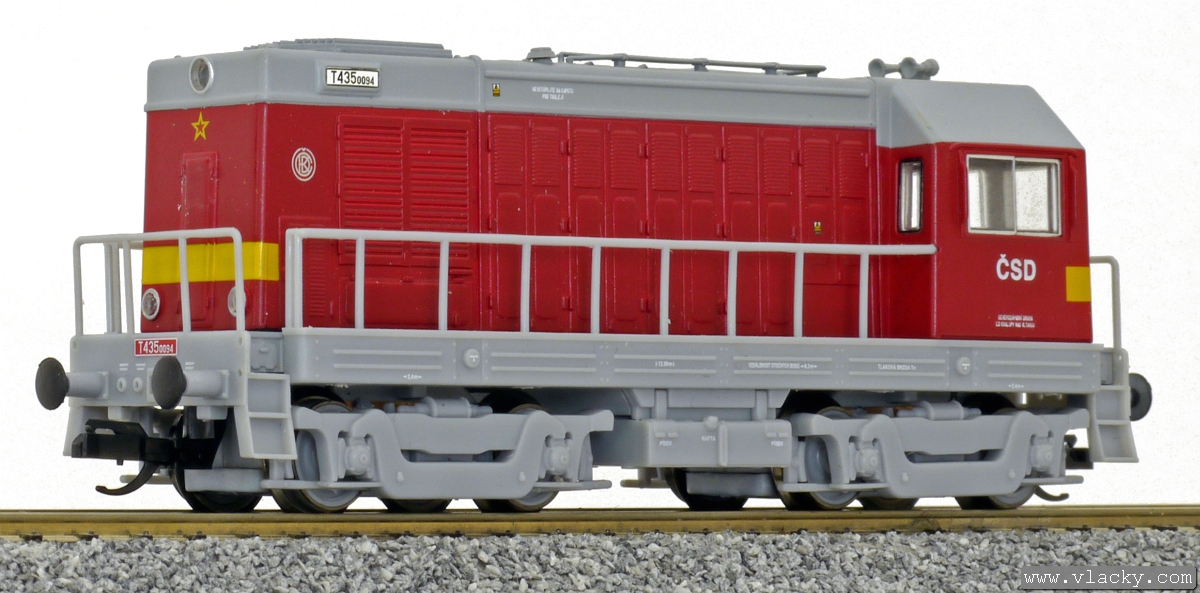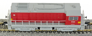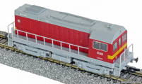 Popis   dieselová lokomotiva červená s šedou střechou, rámem a pojezdem