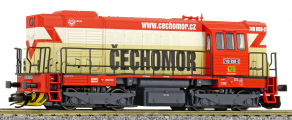 | dieselová lokomotiva s reklamou „ČECHOMOR“ |