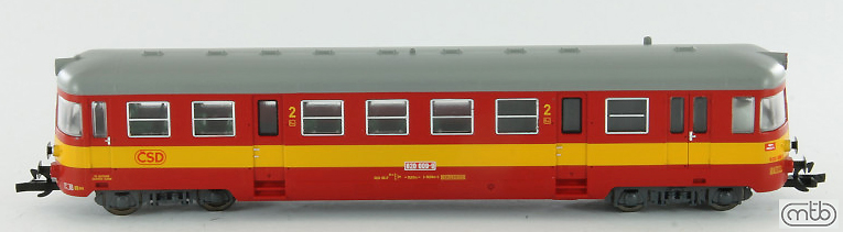 Kód   CSD-820-045  [Lokomotivy] → [Motorové vozy a jednotky] → [M240.0 (820)] → CSD-820-045: motorový vůz červený-slonová kost s šedou střechou, výstražný pruh na čelech