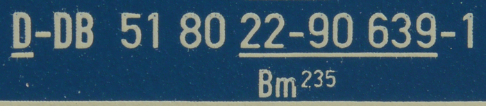 | • 51 80 22-90 639-1 | → | osobní vůz s pevným rozchodem bez klimatizace mezinárodní provoz RIC |