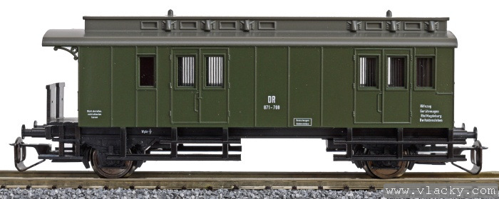 Kód   500929  [Osobní vozy] → [Spěšné a osobní] → [2-osé pruské] → 500929: služební-poštovní vůz hnědý-zelený se světle šedou střechou