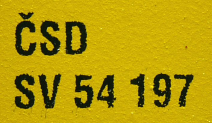 dílenský vůz žlutý s modrým proužkem a šedou střechou