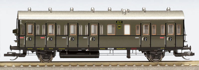 oddílový osobní vůz zelený s stříbřitou střechou 2./3. tř.