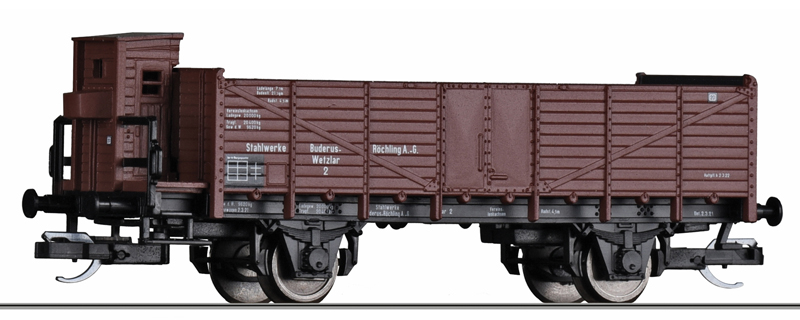 | otevřený nákladní vůz „Buderus-Röchling A.G.“ s brzdařskou budkou |