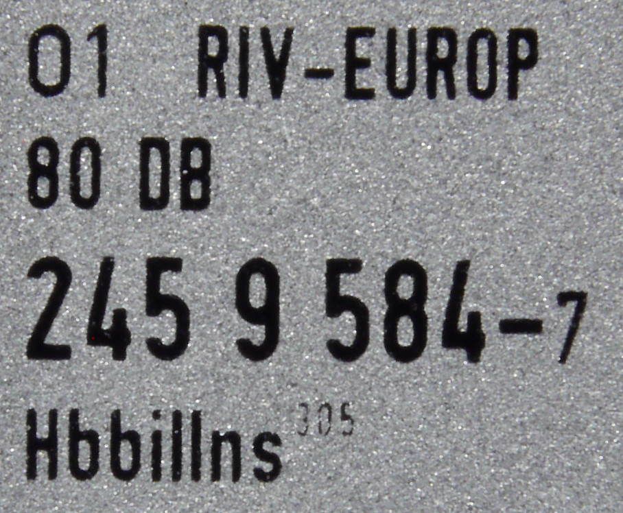 | • 01 80 245 9 584-7 | → | nákladní, nezávislé nápravy, pevný rozchod, ve vlastnictví železniční správy, RIV, EUROP/IF |
