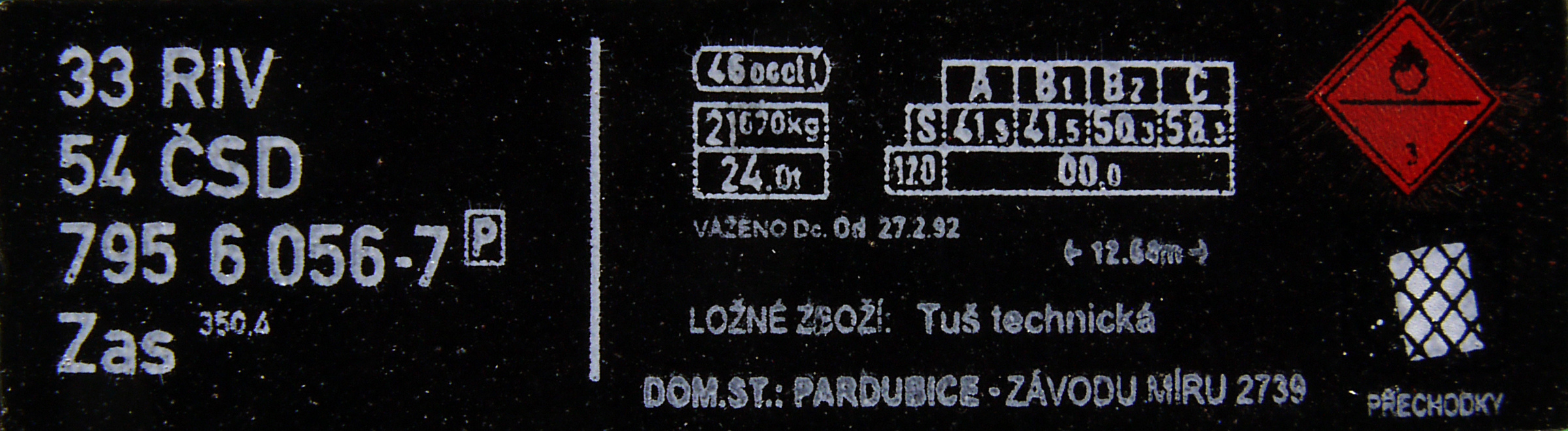 | • 33 54 795 6 056-7 | → | ČSD - Československé státní dráhy |