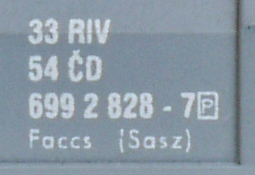 | • 33 54 699 2 828-7 | → | nákladní, s podvozky, pevný rozchod, soukromý vůz, RIV, PPV |