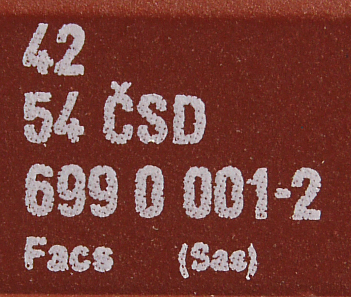 | • 42 54 699 0 001-2 | → | ČSD - Československé státní dráhy |
