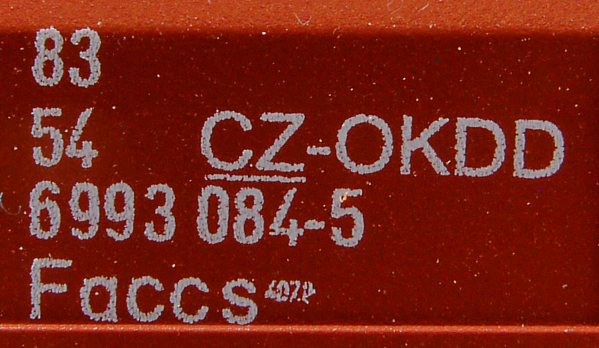 | • 83 54 6993 084-5 | → | nákladní, s podvozky, soukromý vůz, pro mezinárodní dopravu dle zvláštních úmluv |
