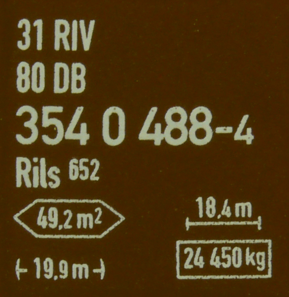 | • 31 80 354 0 488-4 | → | nákladní, s podvozky, pevný rozchod, ve vlastnictví železniční správy, RIV, PPV |