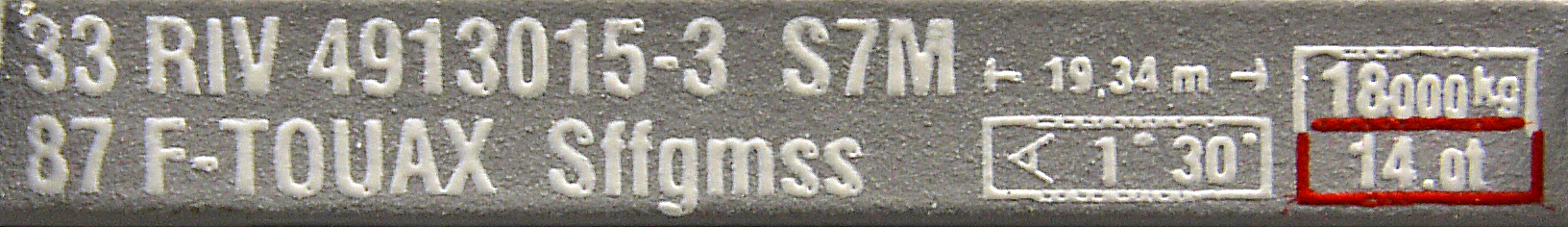 | • 33 87 4913015-3 | → | nákladní, s podvozky, pevný rozchod, soukromý vůz, RIV, PPV |