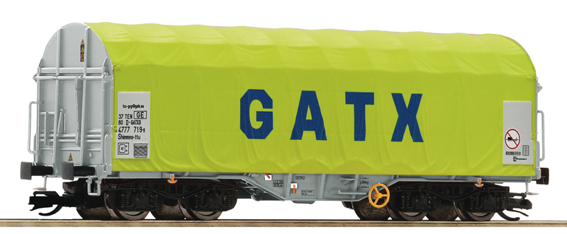 | nákladní plošinový vůz s odsuvnou plachtou „GATX“ |