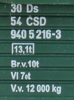 | • 30 54 940 5 216-3 | → | ČSD - Československé státní dráhy |