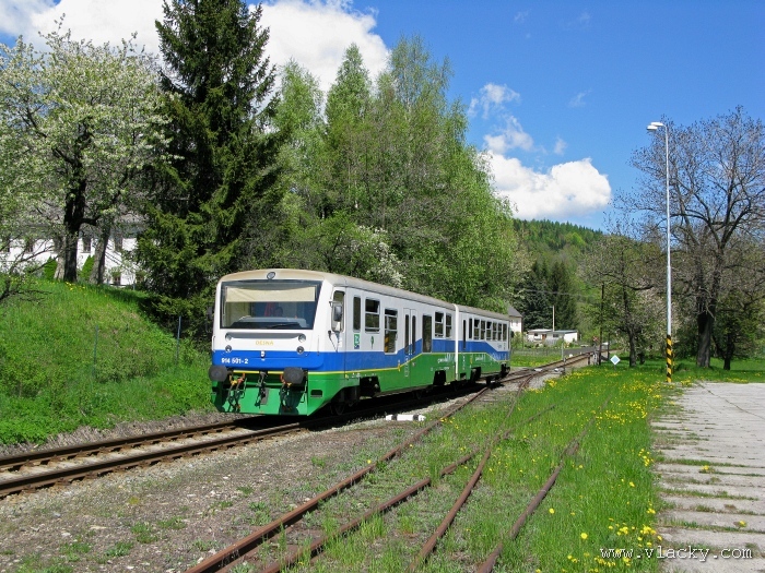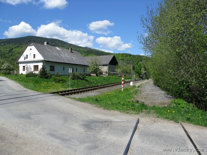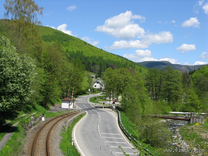 Svoji cestu jsem opět začal u trati mezi Petrovem na Desnou a Sobotínem. Ouha, nestačil jsem stativ připravit a záběr jsem pořídil z ruky. Nevadí, musím si lépe rozložit čas a tento záběr může sloužit jako referenční pro porovnání, jak vypadá takový záběr z ruky, protože následující už budou ze stativu. Přesunul jsem se na další stanoviště. Trať vede z Petrova nad Desnou mezi poli a loukami k mostu přes řeku Desná, následuje zastávka Rapotín zastávka, za ní přejezd se silnicí č. 44 spojující Šumperk s Jeseníkem a hned za ním trať pravotočivým obloukem stoupá k nedaleké zastávce Rapotín. Zde jsem počkal na průjezd Os 13763. Za pár minut za ním jede další Os 13765 z Velkých Losin do Šumperka. Na ten jsem si počkal na nástupišti nedaleké zastávky Rapotín v 11.16. Popojel jsem dále až za zastávku Loučná nad Desnou. Zde trať levotočivým obloukem hned dvakrát přetíná místní komunikaci se zabezpečenými přejezdy. Po průjezdu Os 13764 jsem stačil jsem dojet do následující zastávky Loučná nad Desnou-Rejhotice. Motorová jednotka Desná se již vracela z Koutů nad Desnou zpět jako Os 13767. Pokračoval jsem dále až na konečnou do Koutů nad Desnou, kde jsem si dopřál polední pauzu u kávy. Před vjezdem do stanice Kouty nad Desnou je opěrná zeď a nad ní vedoucí polní cesta. Odtud je hezký rozhled na vjezd do stanice Kouty nad Desnou. Samotná stanice je však bohužel skryta za stromořadím u řeky Desná. Počkal jsem na příjezd Os 13766 v 13.47 a potom jsem spěchal dále. Měl jsem vyhlédnuto další místo poblíž zastávky Loučná nad Desnou-Rejhotice. Souprava Desná se již vracela v 14.13 jako Os 13771. Na zastávce Loučná nad Desnou-Rejhotice jsem pořídil několik záběrů. Proti loňskému roku byla vlečková kolej definitivně snesena, zbytek zůstal pouze na přejezdu v místní komunikaci a za branou areálu. Další krátká zastávka byla v Loučné nad Desnou. Původní staniční budova byla ve srovnání s loňským rokem spravena a opatřena novou fasádou. Na další Os 13770 jsem počkal u přejezdu před Loučnou nad Desnou v 15.20. Jak jsem se dozvěděl později, motorový vůz pro neschopnost již dále nedojel a tato technická závada tak způsobila zpoždění i dalších vlaků. Postižen byl hned Os 13772, který jsem zastihl při zpáteční cestě na zastávce Rapotín zastávka. Vrátil jsem se zpět do Petrova nad Desnou. Os 23867 ze Sobotína nedojel, byl nahrazen autobusem. Os 13773 přijížděl do Petrova nad Desnou také se zpožděním. Protože na obrat v Šuumperku je jen 8 minut, zpožděn byl i Os 13774, na který jsem čekal v polích u vjezdového návěstidla do Petrova nad Desnou, a následující Os 13775 z Koutů nad Desnou, který v Petrově nad Desnou musel počkat na vracející se přípoj od Sobotína. Ale den ještě neskončil. Vrátil jsem se do stanice Petrov nad Desnou kolem 20. hodiny, abych zkusil ještě noční focení. Po západu slunce měnila obloha postupně svoji barvu z nevýrazných odstínů krátce po soumraku, přes krásně temně modrou až po neproniknutelnou černou. Dá se říci, že krásně temně modrá obloha pro focení vydrží tak půlhodinku. Pochopitelně na stativ jsem upevnil fotoaparát, protože expoziční časy se postupně prodlužovaly od 5s až do 15s. Na noční akce by se hodily tak stativy dva, druhý pro kameru. Poslední záběr jsem už nestačil exponovat a z odjíždějícího Os 13782 zůstaly jen obrysy a stopy po reflektorech.