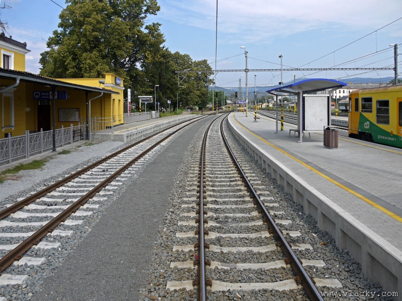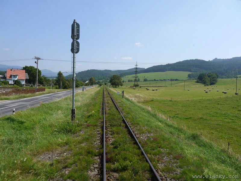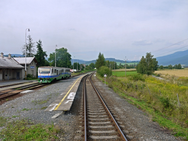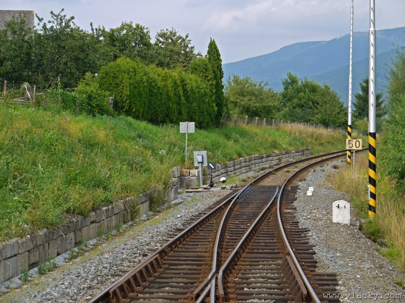 Motorový vůz 810 141-2 "Ježek" před polednem stál ve stanici Velké Losiny, kam přijel jako Os13762. Před polednem se jako Os13765 vrátil v 11.48 do stanice Petrov nad Desnou, aby hned točil na další výkon jako Os23858 do Sobotína s odjezdem v 11.53. Než jsem odjeli ze stanice, po naší levici nás předjela jednotka "Desná" jako Os13764 jedoucí do cílové stanice Kouty nad Desnou. Po výjezdu z Petrova nad Desnou se trať okamžitě stáčí pravým obloukem k hlavní silnici č. 11 na Ostravu. Jízda nebude nijak dlouhá, protože trať do Sobotína měří nějaké 3km a to je před námi ještě Petrov nad Desnou zastávka. Blížíme se k přejezdu se silnicí č. 11, kde je zároveň zmíněná zastávka. Teď v poledne je vytíženost spoje minimální, nikdo nevystupuje, nemáme zpoždění a nezastavujeme. Přejíždíme po ocelovém mostě, kde pod námi je místní komunikace spojující Rapotín s Petrovem nad Desnou a říčka Merta. Trať více stoupá a klikatí se mezi stromy na úpatí svahu. Netrvá dlouho a přijíždíme do stanice Sobotín. Po naší pravici je viditelná zástavba kolem silnice č. 11, ale jedná se o obec Petrov nad Desnou. Obec Sobotín začíná až za stanicí. Zastavujeme před staniční budovou, ale koleje pokračují ještě dále dozadu k rampě. Zde je manipulační sklad firmy Desná a.s., která se v tomto areálu zabývá zpracováním a prodejem surového dřeva, řeziva a paliva. V týdnu je zde často nakládáno i více vozů dřevem a celkem pravidelně je možné vidět nákladní manipulační vlak Mn83454, který v 7.35 naváží prázdné vozy do Sobotína, a jako Mn83455 je v 8.30 vozí zpět. Časy odjezdu jsou podle grafikonu, ale jsou orientační a vlak jede jen v případě potřeby. Po několikaminutovém pobytu ve stanici Sobotín odjíždíme v 12.03 jako přímý Os23859 do stanice Šumperk. V odpoledních hodinách se pravidelným spojem Os23865 dopravuji v 15.31 do Šumperka. Motorový vůz 810 141-2 "Ježek" pojede jako Os23866/Os13772 do Koutů nad Desnou. Do odjezdu v 15.39 zbývá pár minut na přípravu a nějaké to dokumentační foto u nástupiště. Přiblížil se čas pravidelného odjezdu a výpravčí nám dává návěst rozkaz k odjezdu. Opouštíme elektrifikovanou stanici Šumperk a podle jízdního řádu zdoláváme první kilometry trati. Nebudu zde popisovat trať do Koutů nad Desnou. Průběh jízdy jsem okomentoval v minulých letech. Poukázal bych na nejviditelnější úpravy trati v úseku Petrov nad Desnou - Rapotín zastávka. Zde v levém oblouku byly zde provedeny větší zemní úpravy zářezu s novým odvodněním. Zářez byl také snížen odvozem přebytečné zeminy a rozšířen. Ve Velkých Losinách se strojvedoucí ohlašuje výpravčímu do Petrova na Desnou. Musíme také počkat na příjezd Os13773 z Koutů nad Desnou, se kterým se zde křižujeme. Bezoblužnost křižování zajišťují výhybky se samovratnými přestavníky na obou zhlavích stanice. Při odjezdu z Velkých Losin je dobře vidět, že výhybka je přestavena v základní poloze do odbočky a kola našeho motorového vozu ji přehodí do přímého směru. V horní části trati je místy viditelné agresivní prorůstání zeleně v tělese trati. Ani pravidelné postřiky trati proti plevelu nemohou vegetaci zadržet. Navíc od Loučné nad Desnou-Rejhotice je trať více schována v lesním porostu. Řešením je tak pravidelné prořezávání náletových dřevin a odstraňování vegetace v blízkosti koleje. Takové prořezání svahu je vidět před lichoběžníkovou tabulkou na vjezdu do stanice Kouty nad Desnou. Ve stanici Kouty na Desnou bývají odstaveny přívěsné vozy. Tentokrát neušly vandalismu příznivců graffiti. Jeden přívěsný vůz je zrovna na obnově laku a druhý na opravu čeká na konci odstavné koleje. Ve stanici Kouty nad Desnou a při zpáteční cestě v Os13775 jsem pořídil několik dokumentačních záběrů a v 16.57 jsem vystoupil v Petrově nad Desnou. Další informační zdroje: